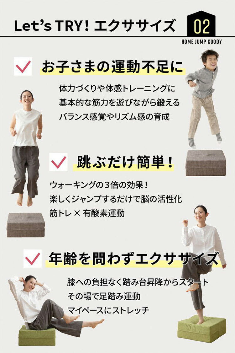 トランポリン、クッション、20cm厚、エクササイズ、ホームジャンプグッディ―、ファブリックトランポリン、トランポリンクッション、滑り止め、大人用、ダイエット、家庭用、子供、マンション、室内、運動、子供用クッション、時短、組み立て不要、ストレス発散、体圧分散、ウレタン