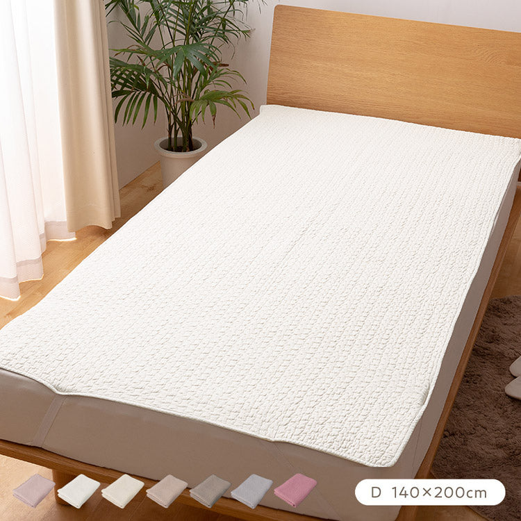 くもの形のキルト加工で、ぽこぽこ感がかわいい綿100%の敷きパッド。汗ばむ季節もさらっとした肌触りで快適。ゴムバンド付きでベッドにも敷布団にもOK。