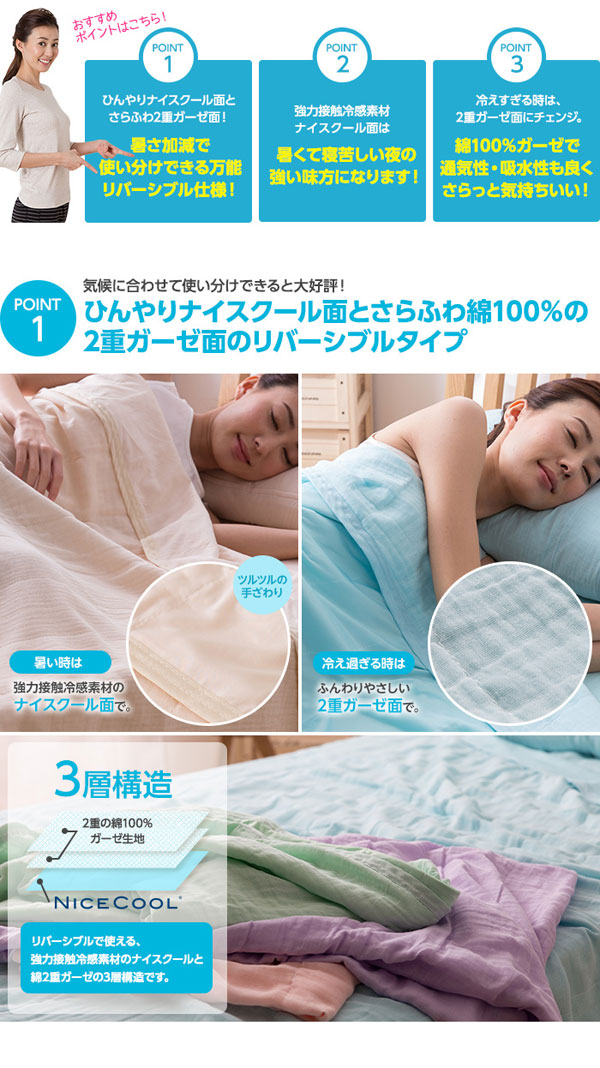 2重ガーゼ3層ひんやりガーゼケット シングル 接触冷感ナイスクール素材使用