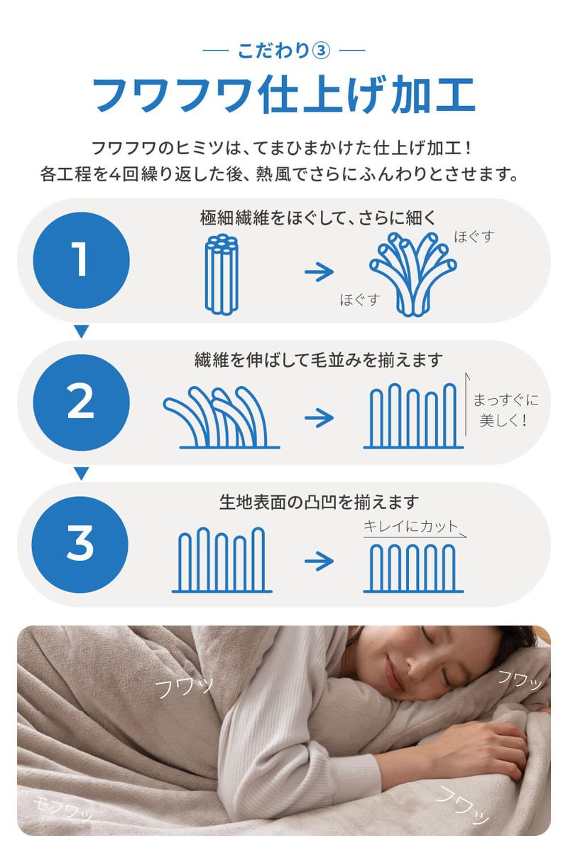 ・ご使用時の摩擦や洗濯時に毛並みが乱れた場合は、早めに一方向にブラシを掛けてください。
