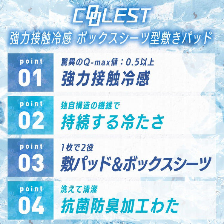 強力接触冷感 敷パッド一体型ボックスシーツ Q-MAX0.5 セミダブル 120×200×30cm 洗える 丸洗い 洗濯 クール ボックスシーツ 敷パッド ベッドシーツ マットレスカバー ウォッシャブル 冷感寝具