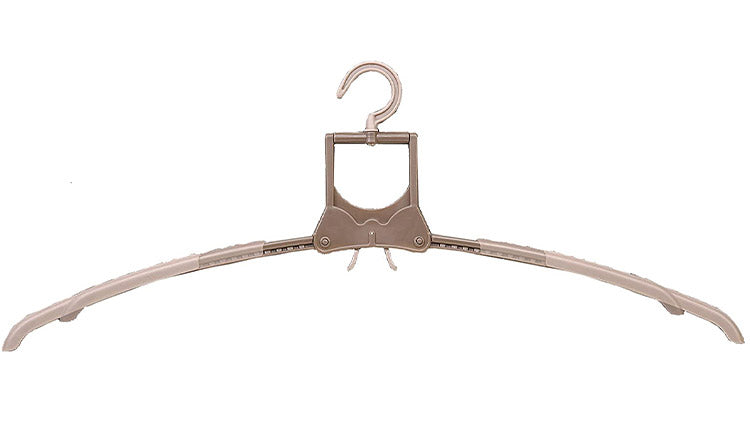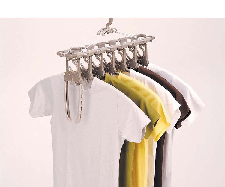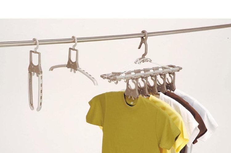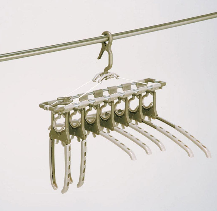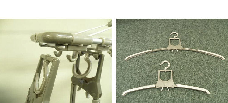 折りたたみ式のハンガーなのでTシャツなどの首元から差し込め、伸ばさずに簡単に干せます。取り入れもつまみをつまめばワンタッチで取り込めます