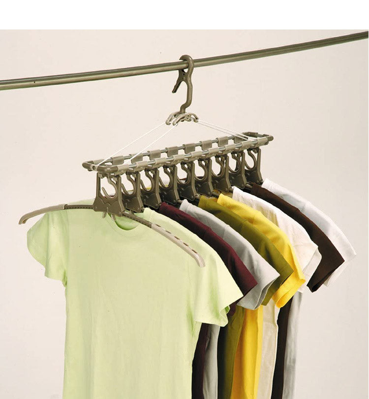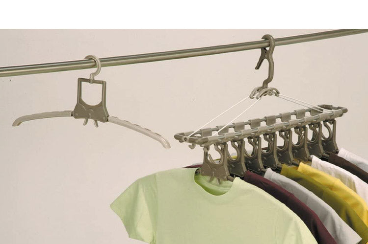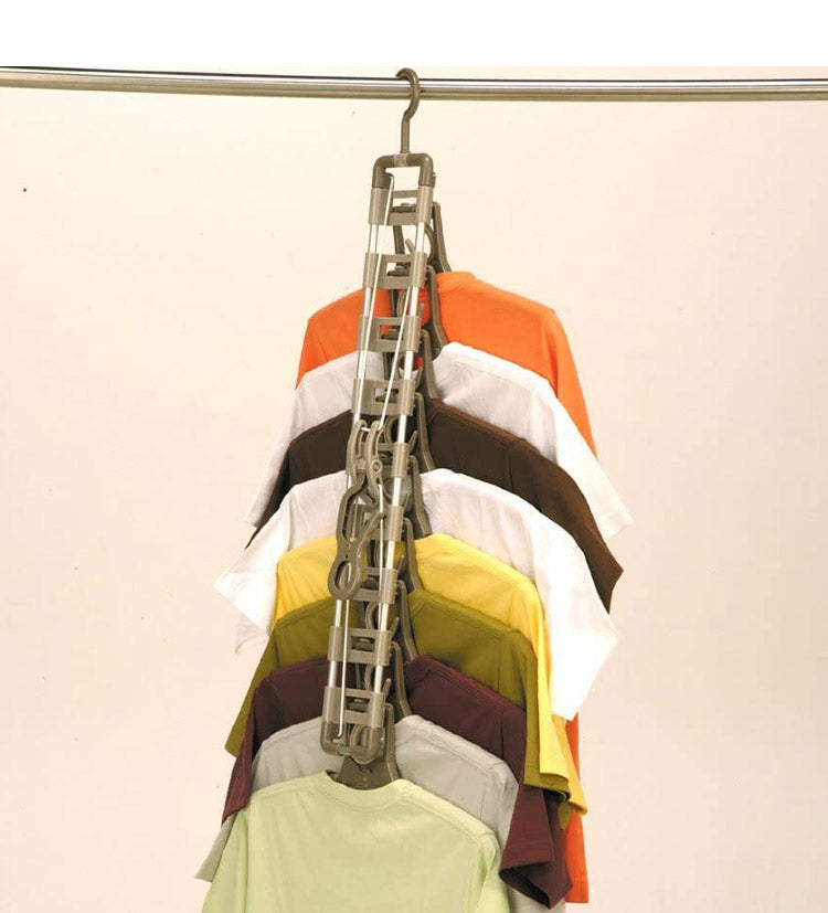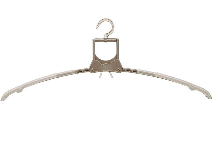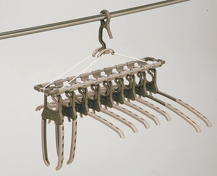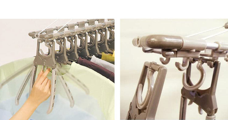折りたたみ式のハンガーなのでTシャツなどの首元から差し込め、伸ばさずに簡単に干せます。取り入れもつまみをつまめばワンタッチで取り込めます