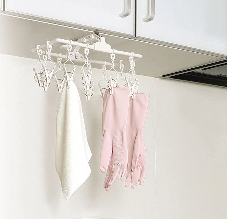 キッチンなどの吊戸棚に取り付けられ小物干しに便利