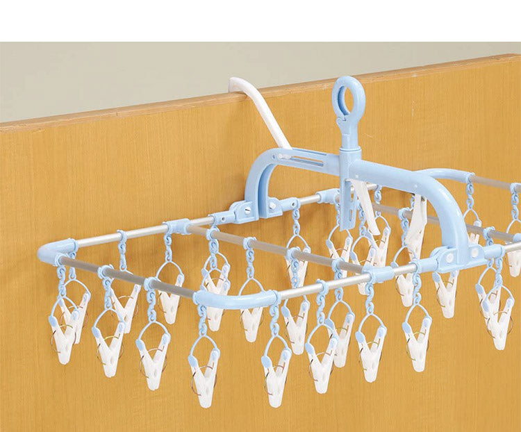 ドア等に掛けられるフック付きなので、室内干しに便利です