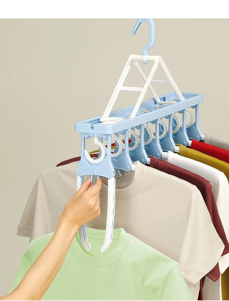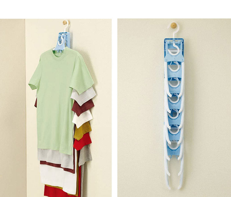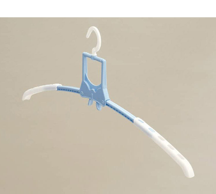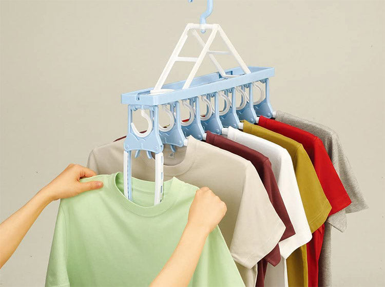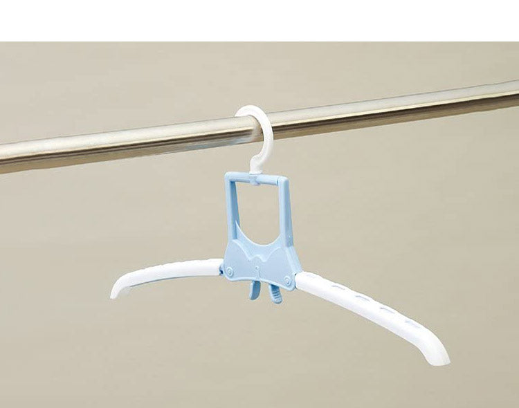 折りたたみ式のハンガーなのでTシャツなどの首元から差し込め、伸ばさずに簡単に干せます。取り入れもつまみをつまめばワンタッチで取り込めます