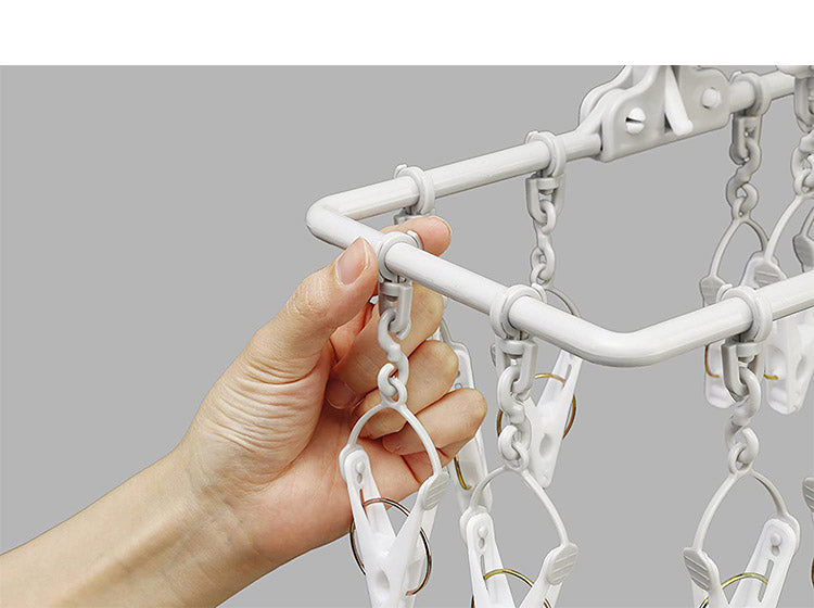 ドア等に掛けられるフック付きなので、室内干しに便利です