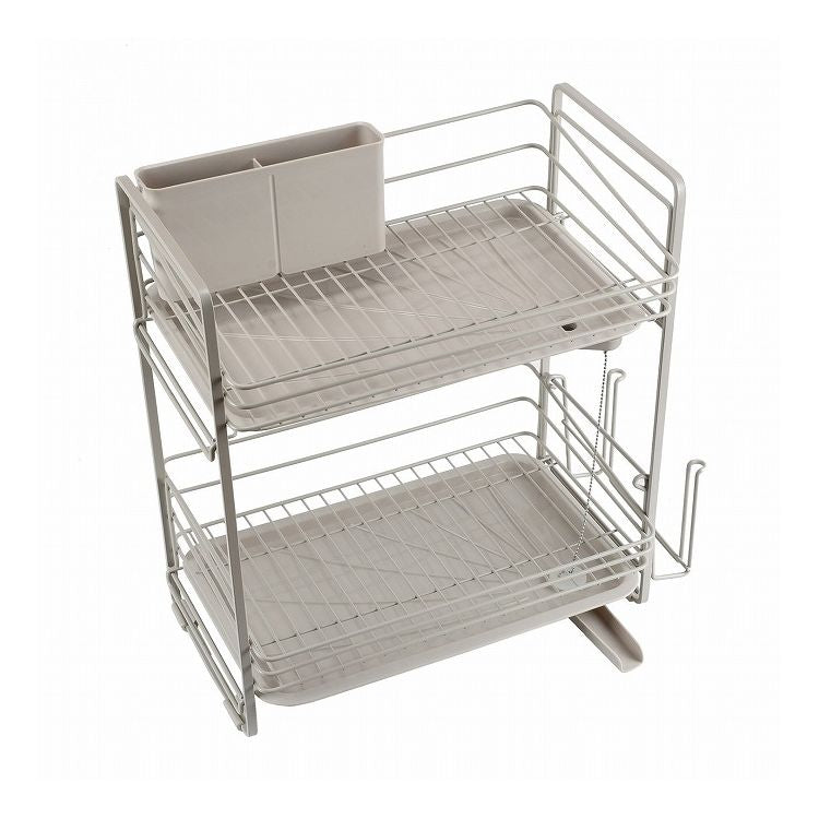 水切り ラック 2段 水切りポケット付 スリム まな板受け付 ボールチェーン付 スライド式トレー 傾斜付トレー 防サビ キッチン シンクまわり 水周り ワームグレー LD-274 Style Storage(代引不可)