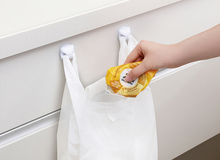 ●ご家庭のポリ袋やレジ袋をはさむだけで「三角コーナー」や「ゴミ箱」の代わりとして使えます。