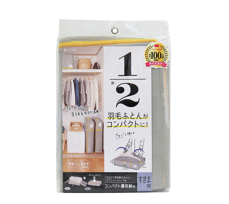 羽毛布団収納袋 立てられる布団ケース コンパクト優収納アルファ すきま用 グレー 85701 すきま収納 隙間収納 クローゼット収納 押入れ収納 押し入れ収納 東和産業