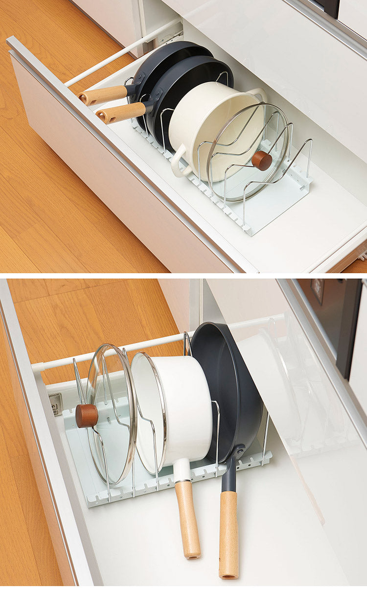 鍋・フライパンに合わせてM字ワイヤーの取付位置を調節して空間を有効活用。