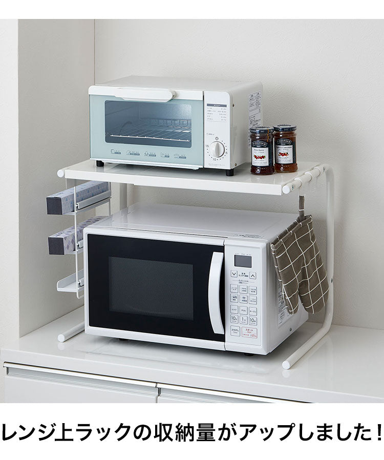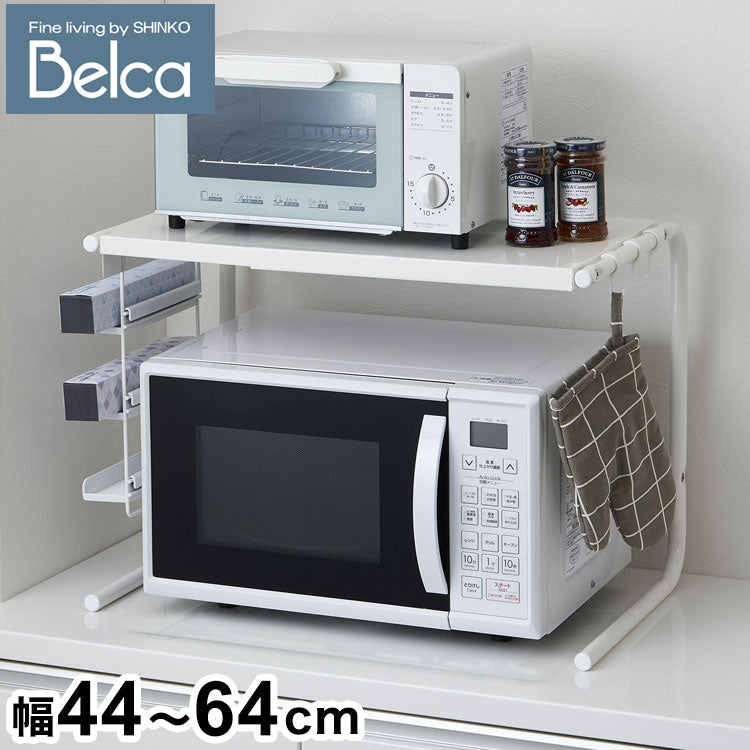 レンジ上ラック 幅伸縮式 幅44~64cm フック・ラップホルダー付き 大型レンジ対応 キッチン収納 レンジラック 調味料ラック 家電ラック トースターラック キッチンラック 伸晃 Belca RUR-EXN(代引不可)