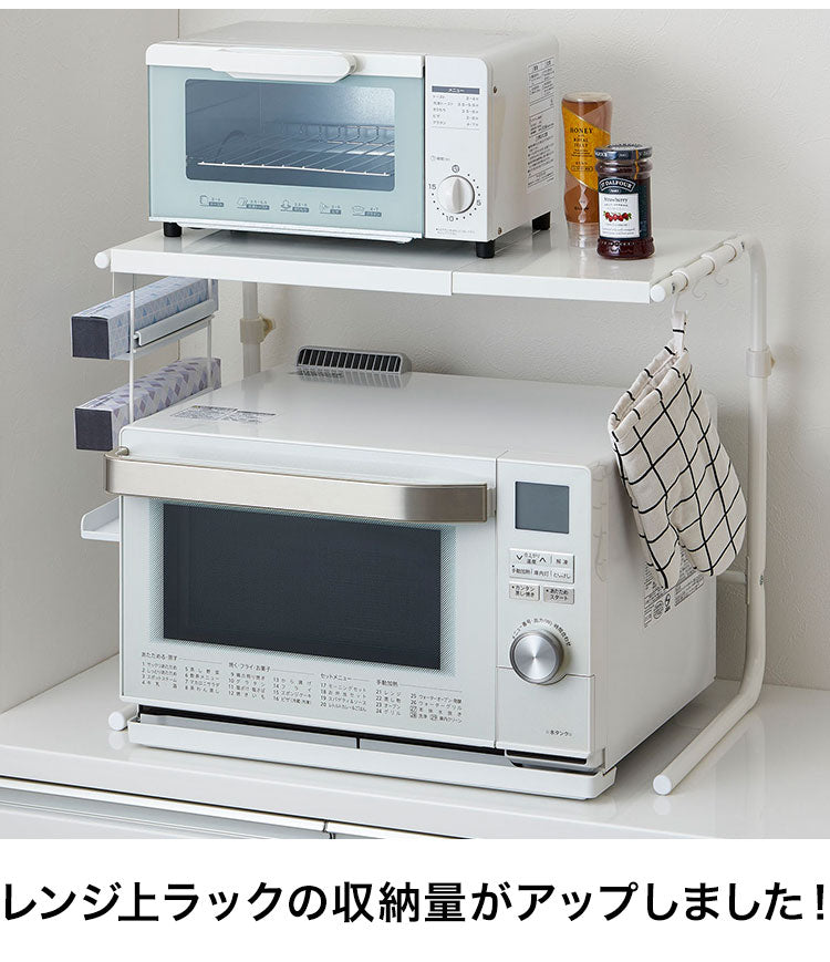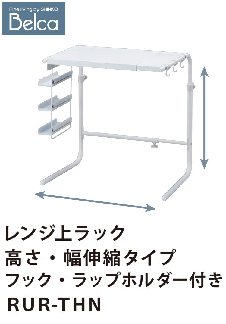 レンジ上ラック 幅・高さ伸縮式 幅44~64cm 高さ43~54cm フック・ラップホルダー付き 大型レンジ対応 幅高さ伸縮 キッチン収納 レンジラック 家電ラック トースターラック 伸晃 Belca RUR-THN(代引不可)