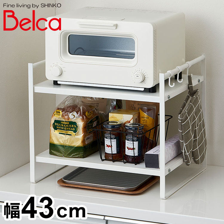 トースターラック 2段 大型トースター対応 フック付き キッチン収納 家電ラック 家電下ラック トレー収納 調味料ラック 卓上 スチールラック キッチンラック 伸晃 Belca TR-2W(代引不可)