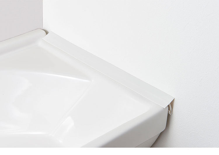 洗面台や洗濯台のすき間にはめ込むだけで水はねほこりをブロックします。