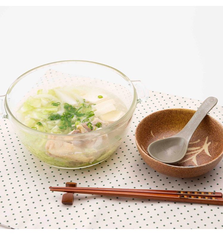 本体/耐熱ガラス(耐熱温度400℃、耐熱温度差120℃、耐冷温度-20℃)、フタ・ザル/ポリプロピレン(-20℃~120℃)、ハンドル/シリコーンゴム(-20℃~180℃)