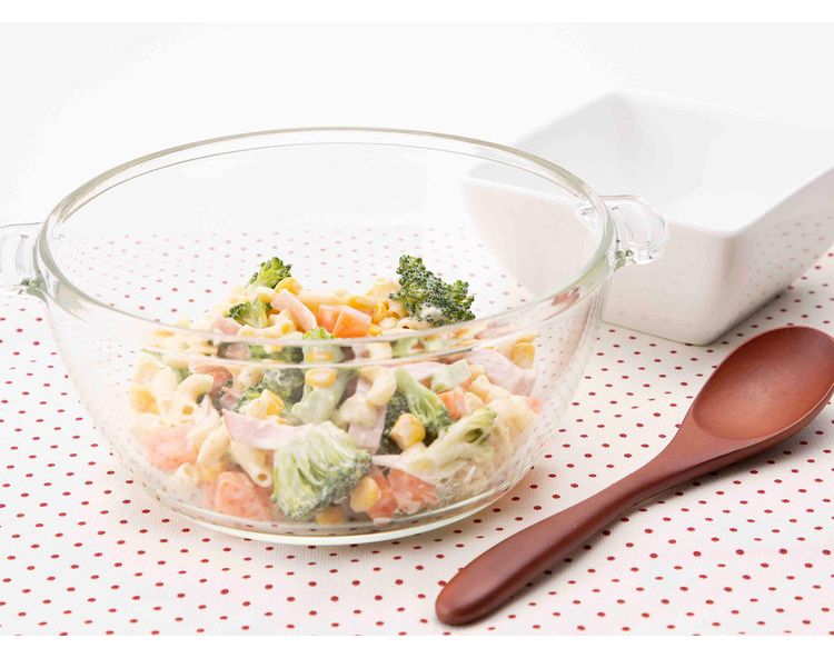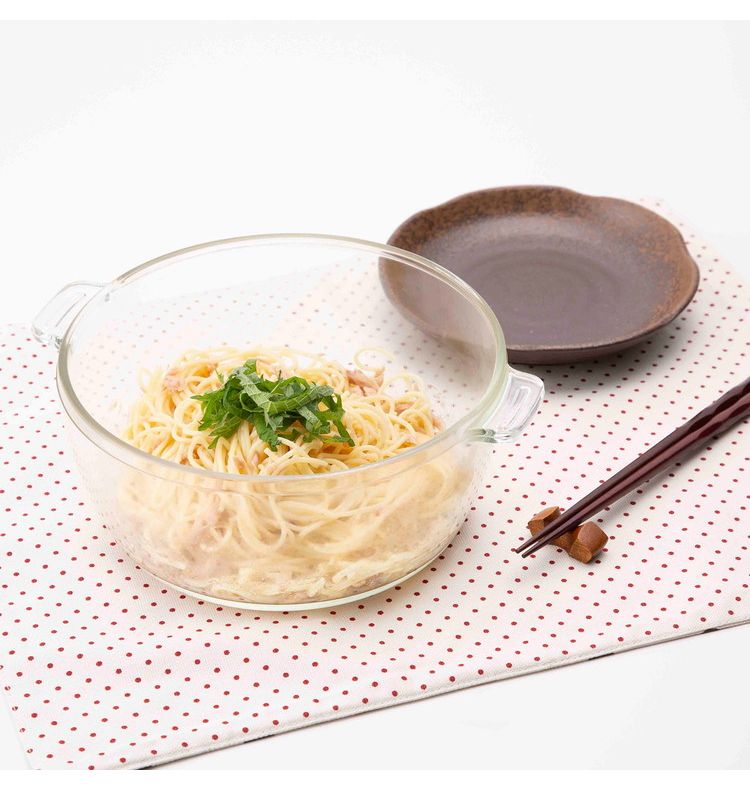本体/耐熱ガラス(耐熱温度400℃、耐熱温度差120℃、耐冷温度-20℃)、フタ・ザル/ポリプロピレン(-20℃~120℃)、ハンドル/シリコーンゴム(-20℃~180℃)