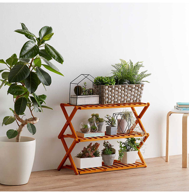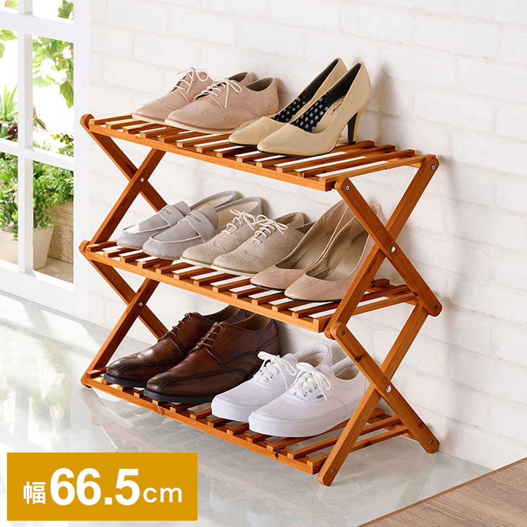 天然木 折りたたみ シューズラック 3段 オープンラック ガーデンラック 棚 シェルフ フラワースタンド 花台 ウッドラック ガーデニング 木製 玄関収納 スリッパラック アウトドア キャンプ おしゃれ