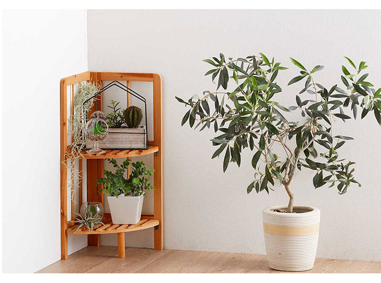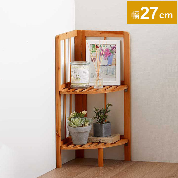 天然木 コーナーラック 2段 オープンラック すき間収納 隙間収納 トイレラック プランター台 フラワースタンド 花台 ウッドラック ガーデニング ガーデンラック 棚 シェルフ 木製 玄関収納 おしゃれ