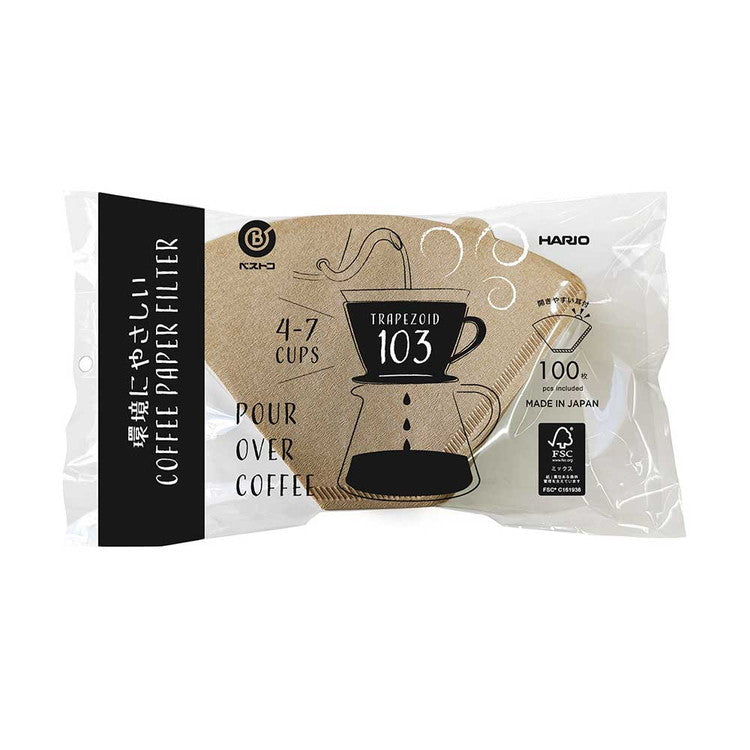 HARIO ハリオ 環境にやさしいコーヒー ペーパー フィルター 103 台形 4-7杯用 100枚入 ブラウン MA-443 ベストコ