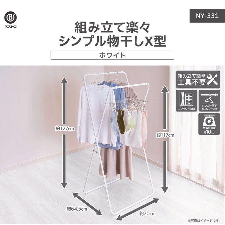 ベストコ 物干し 室内干し X型 組み立て簡単 すっきり コンパクト 幅70×奥行64.5×高さ127cm ホワイト NY-331