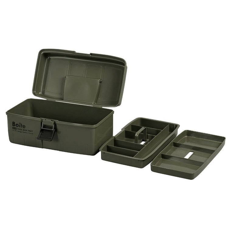 Boite デザインツールボックス 中皿式 ガレージ DIY アウトドア 工具箱 大容量 裁縫箱 ソーイングボックス パーツ カーキ MA-4025 おしゃれ