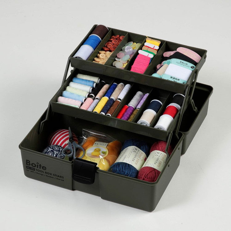 Boite デザインツールボックス 仕切式 ガレージ DIY アウトドア 工具箱 大容量 裁縫箱 ソーイングボックス パーツ カーキ MA-4028 おしゃれ