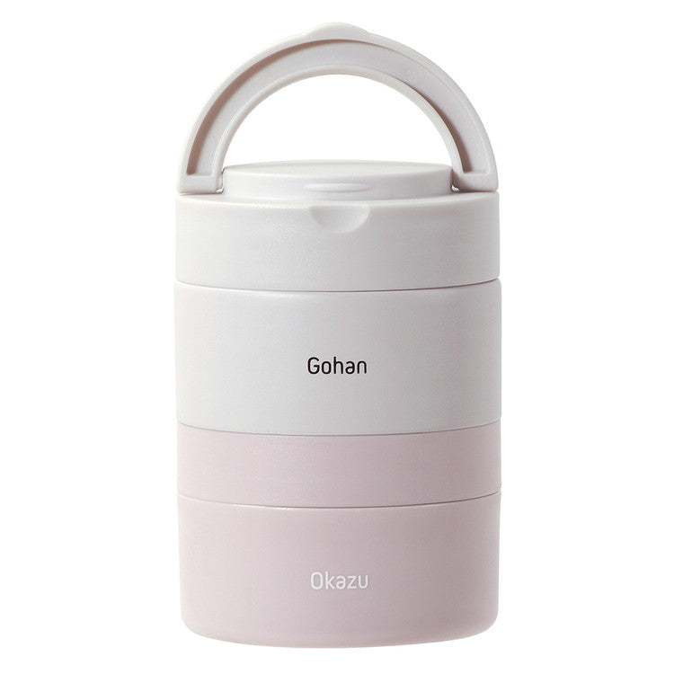 ベストコ 弁当箱 2段 ハンドル付き 480ml ペールピンク 保温 丸型 小さめ NQ-213