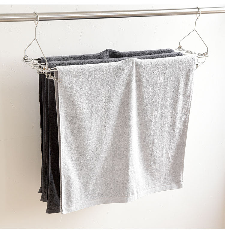 バスタオルを一度に3枚干せるピンチ付きのバスタオルハンガーです。