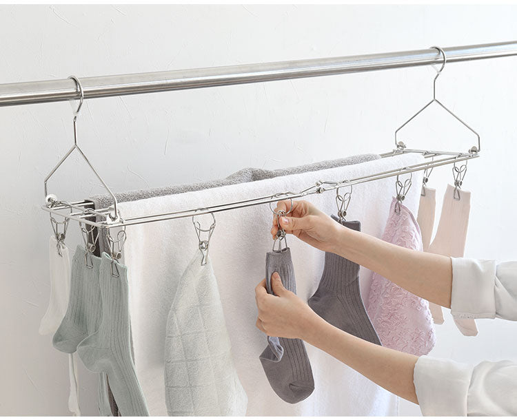 ピンチが付いているので、干したタオルの端を止めてずれにくくしたり、小物等を干すことができます。