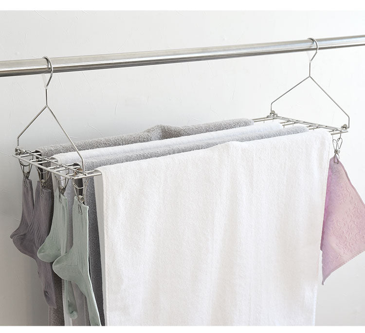 ピンチが付いているので、干したタオルの端を止めてずれにくくしたり、小物等を干すことができます。