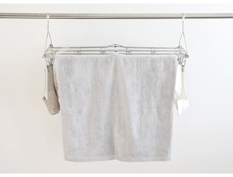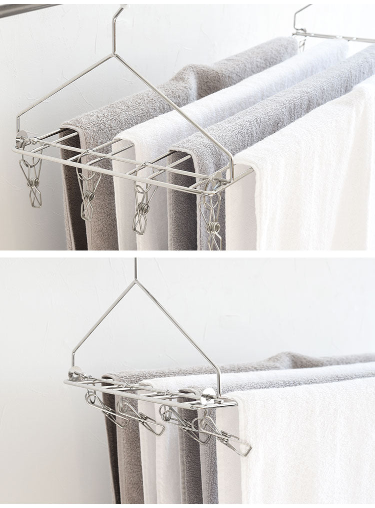 バスタオルを一度に4枚干せるピンチ付きのバスタオルハンガーです。