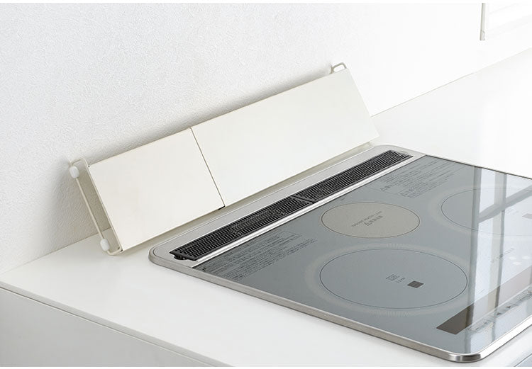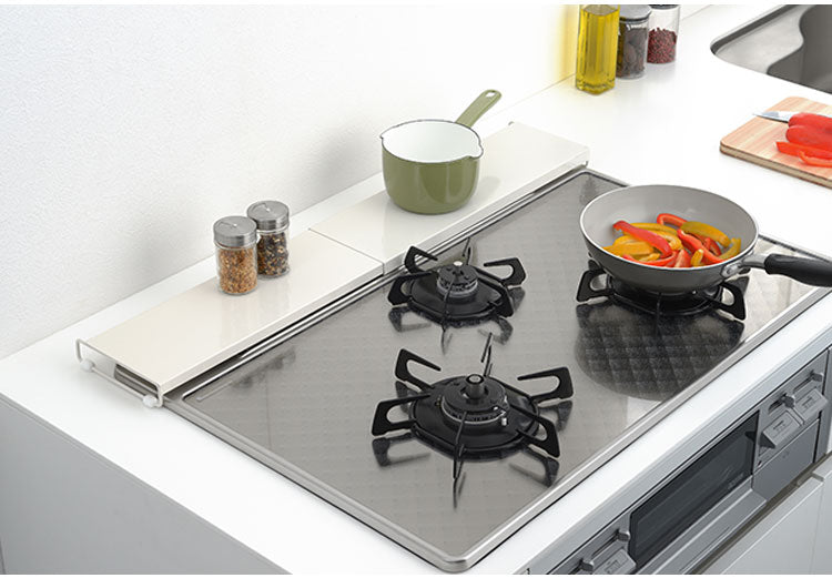 汚れを防ぐだけでなくデッドスペースになりがちなコンロ奥を収納スペースとして有効活用できます!