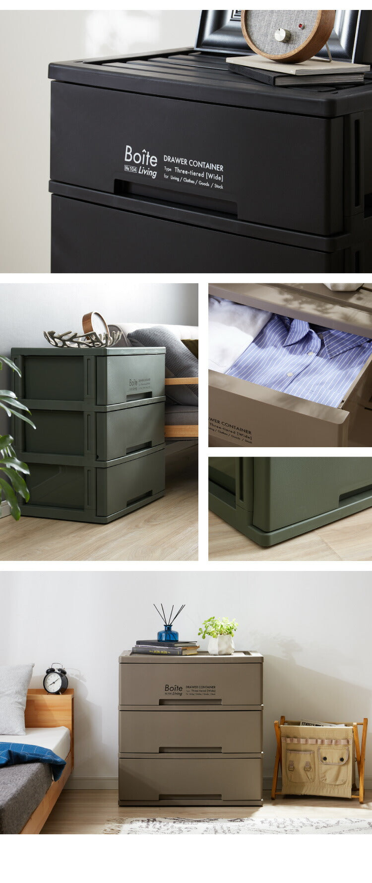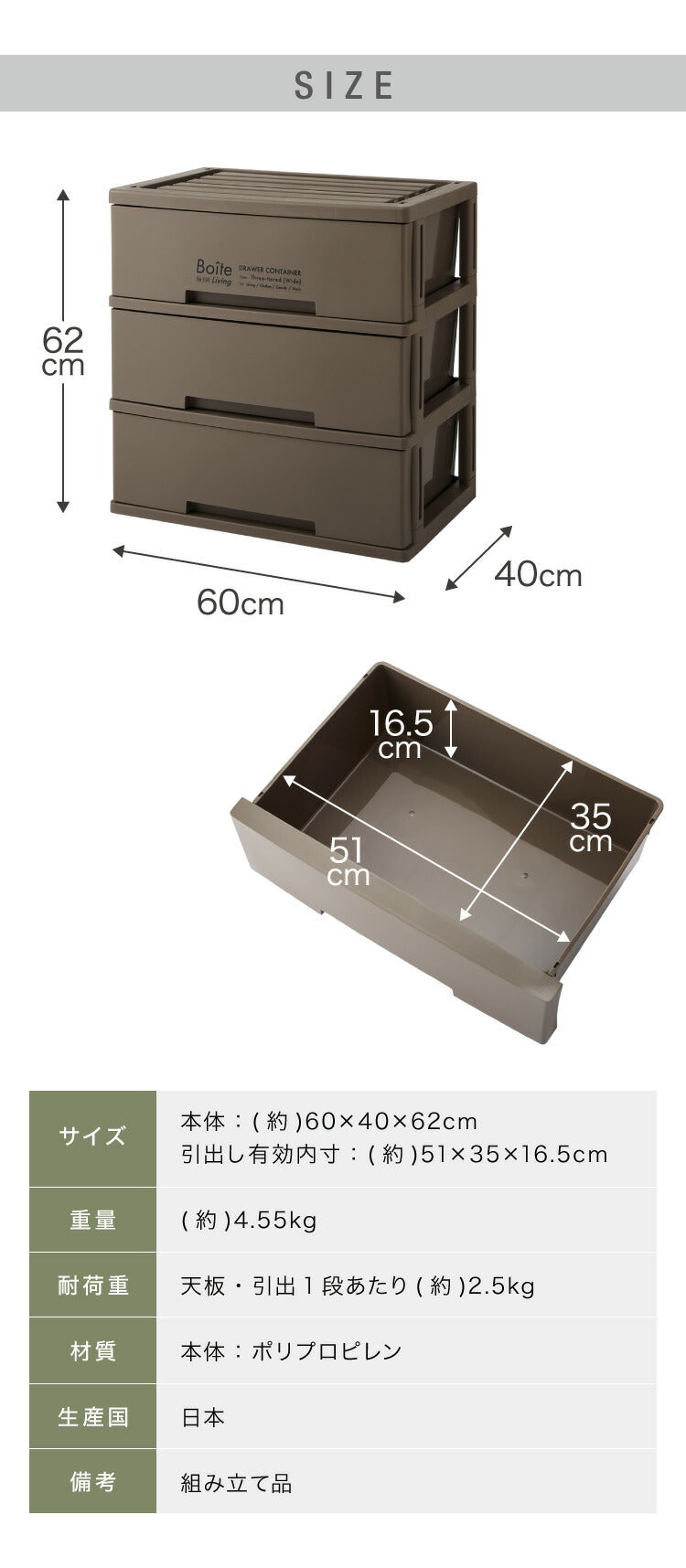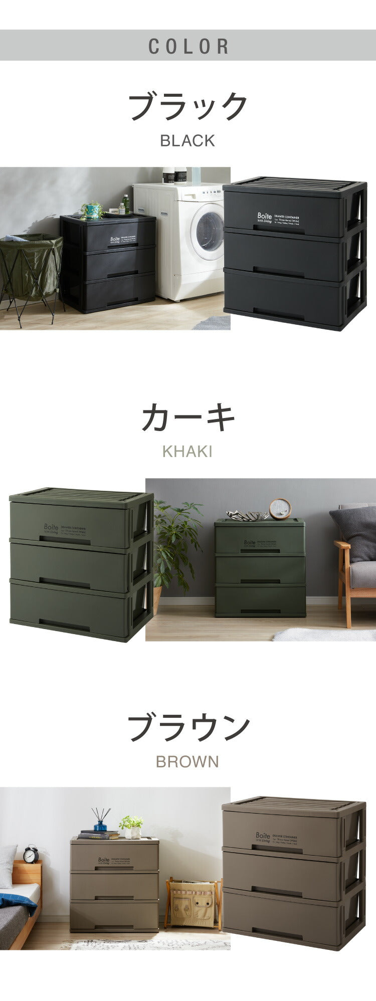 デザイン収納ケース チェスト 幅60 Boite ワイド 3段 日本製 収納ボックス コンテナ 引き出し 衣類収納 リビング 収納 衣類ケース クローゼット 押入れ 大容量 おしゃれ