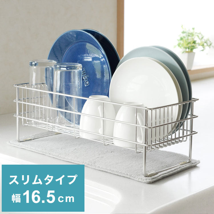 MELIS 水切りラック スリム 吸水マットセット 幅16.5 奥行41.5 メリス 水切りかご ステンレス製 シンプル キッチン収納 アーネスト A-77365
