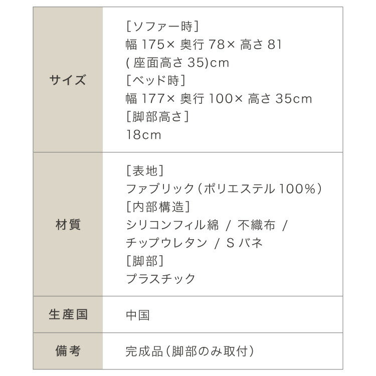 [ソファー時]幅175×奥行78×高さ81(座面高さ35)cm