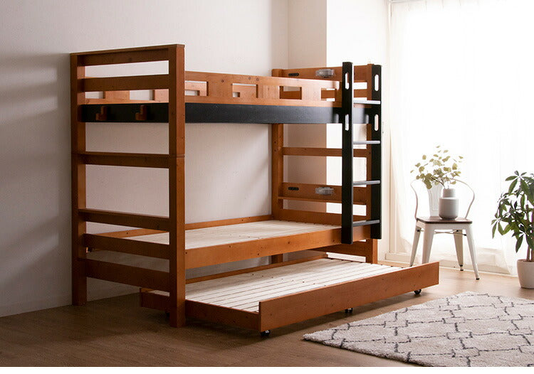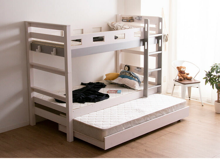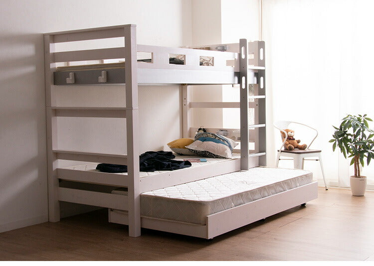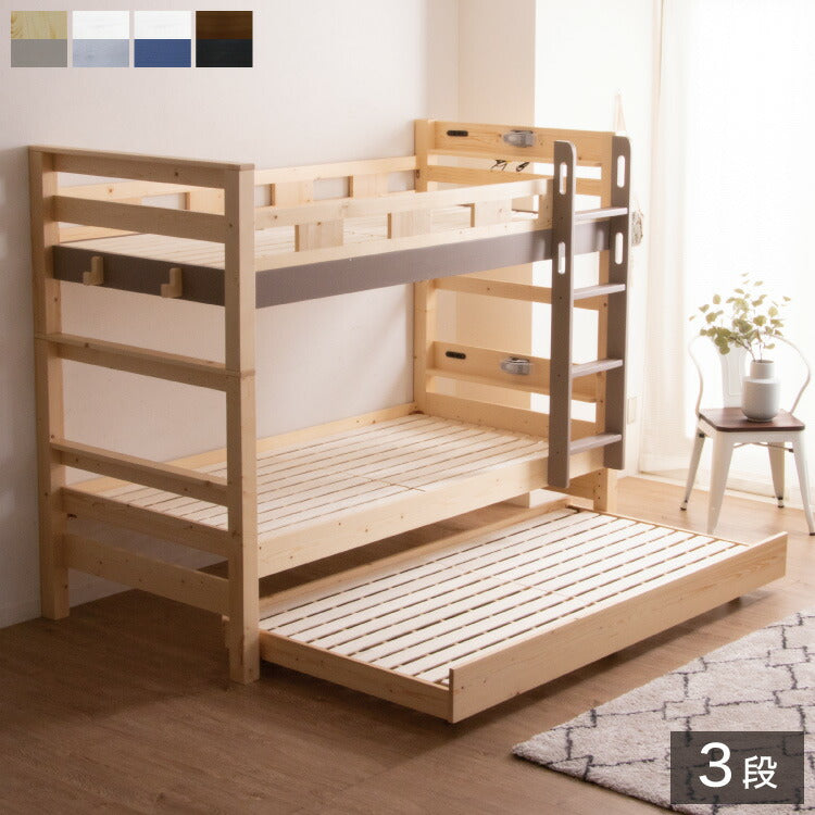 3段ベッド 三段ベッド 親子ベッド 耐荷重900kg 子供用 大人用 子供部屋 コンセント付き ライト付き キャスター 木製ベッド フック付き すのこ ベッド 天然木 パイン材 北欧 おしゃれ ゲストハウス(代引不可)