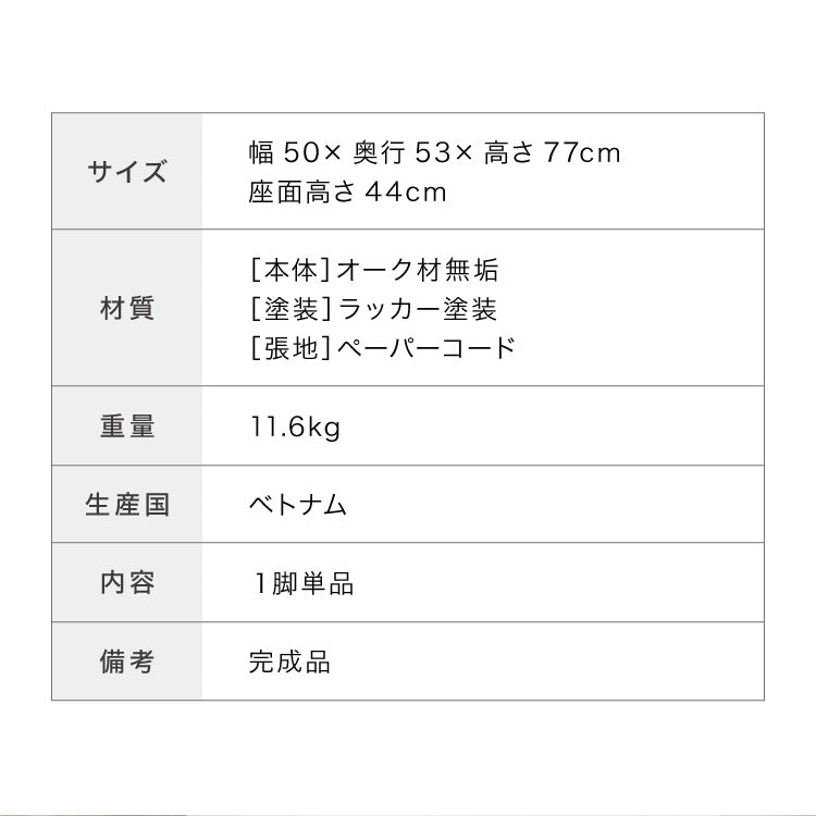 ダイニングチェア 単品 ペーパーコードチェア ナチュラル 完成品 PAPERCORD CHAIR オーク無垢材 天然木 椅子 いす イス チェアー パーソナルチェア(代引不可)