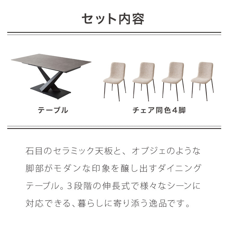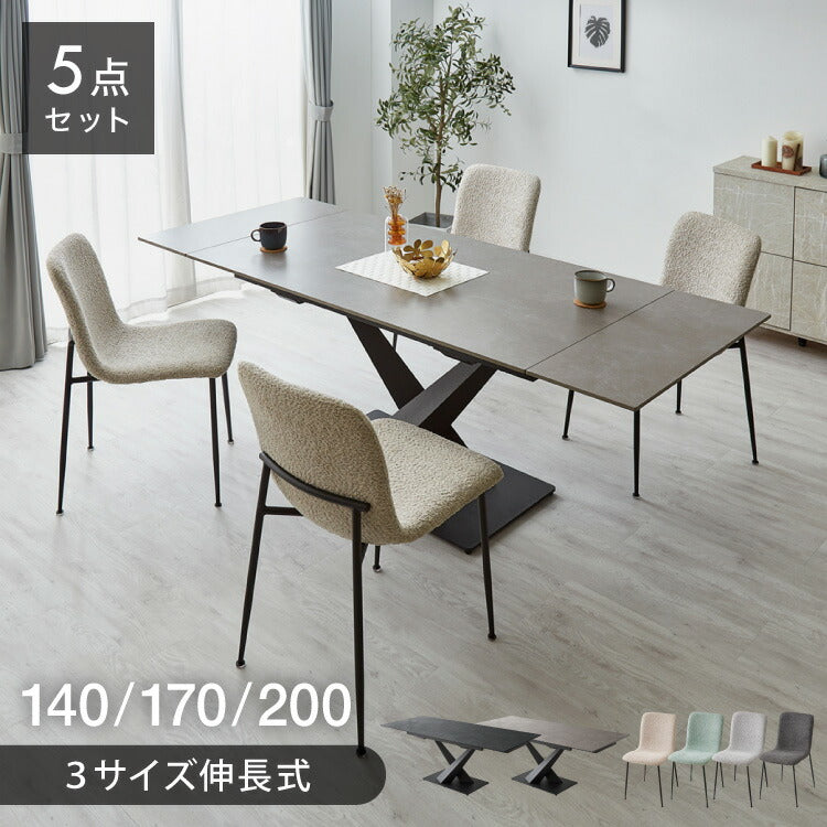 セラミック 両側伸長式ダイニングテーブルセット 幅140~200 伸縮 ダイニング5点セット 4人掛け 伸縮テーブル モダン 伸長式 ダイニング 耐水 耐熱 白 艶消し 傷がつきにくい おしゃれ(代引不可)