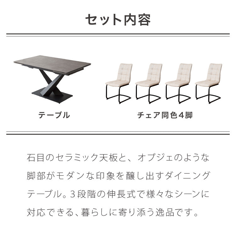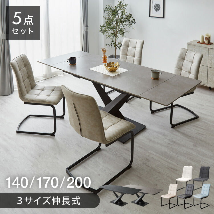 セラミック 両側伸長式ダイニングテーブルセット 幅140~200 伸縮 ダイニング5点セット 4人掛け 伸縮テーブル モダン 伸長式 ダイニング 耐水 耐熱 白 艶消し 傷がつきにくい おしゃれ(代引不可)