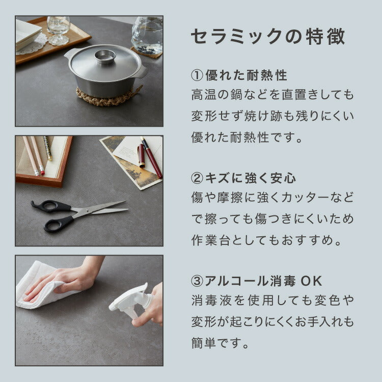 傷がつきにくく、熱に強い、厚さ12mmのセラミック天板。