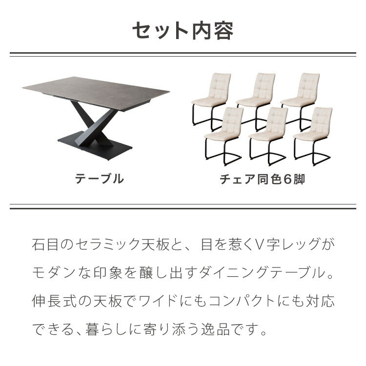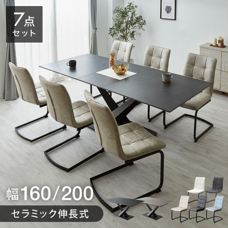 セラミック 伸長式ダイニングテーブルセット 幅160~200 伸縮 ダイニング7点セット 4人掛け 6人掛け 伸縮テーブル モダン 伸長式 ダイニング 耐水 耐熱 白 艶消し 傷がつきにくい おしゃれ(代引不可)