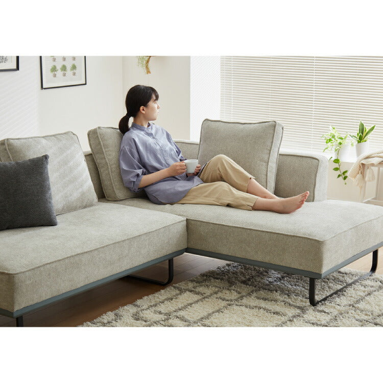 カウチソファ 幅220cm 3人掛け 撥水 防汚 Livesmart ファブリック生地 クッション付きダークグレー ベージュ ロボット掃除機対応 座面固め 背面柔らかい ペット 子供 脚付き(代引不可)