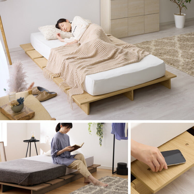 【セット販売】ベッドフレーム ボンネルコイルマットレス セミダブル すのこベッド おしゃれ 韓国インテリア 北欧 すのこ 脚付き 木目調 低床 かわいい コンパクト ステージベッド 可愛い ベット