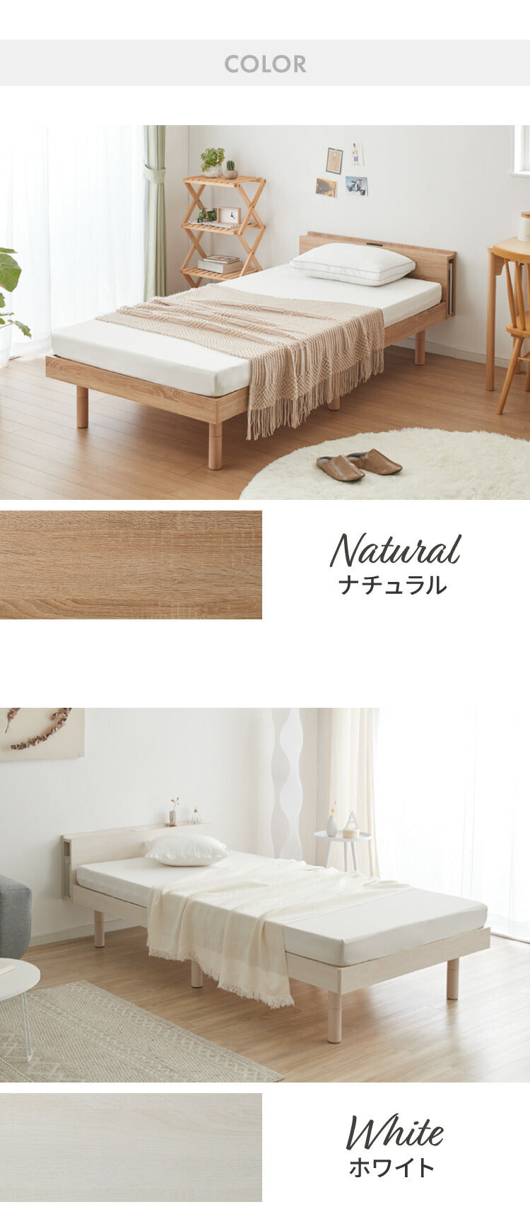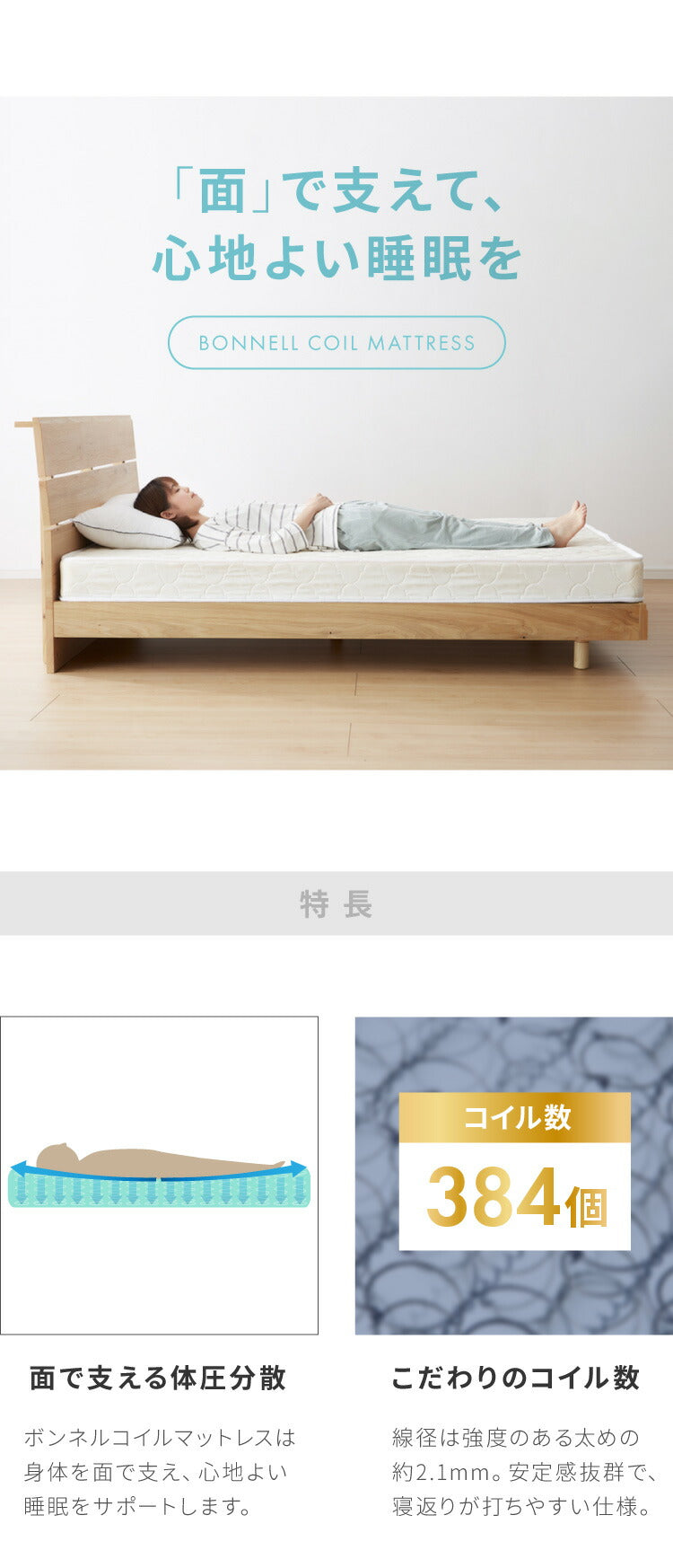 マットレス付き ベッド すのこベッド セミダブル ベッドフレーム 宮付き 宮棚 ボンネルコイル 棚付き ヘッドボード 2口コンセント付き メラミン 収納ベッド シングルベッド