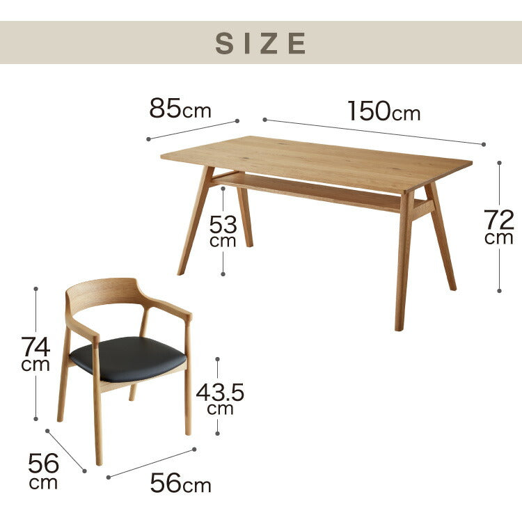テーブルはぬくもりのある天然木オーク材を使用。天板下にはあると便利な小棚付き。