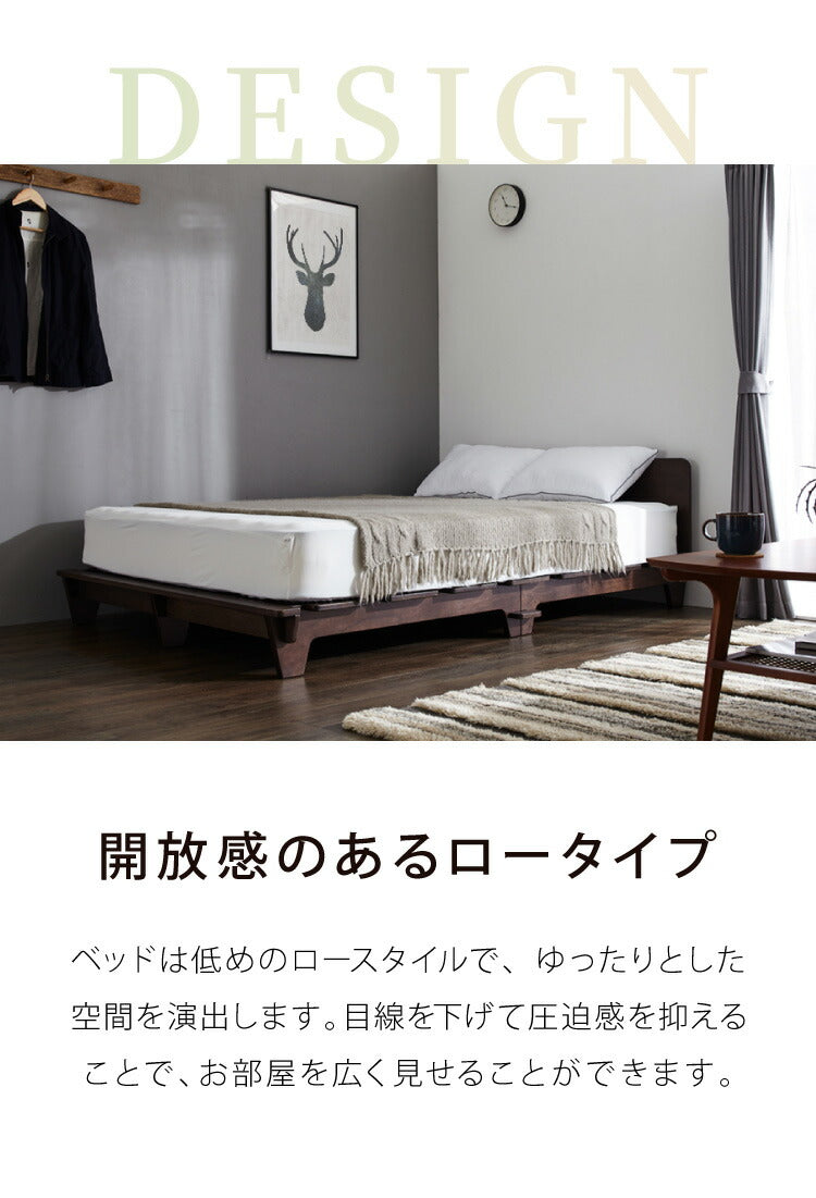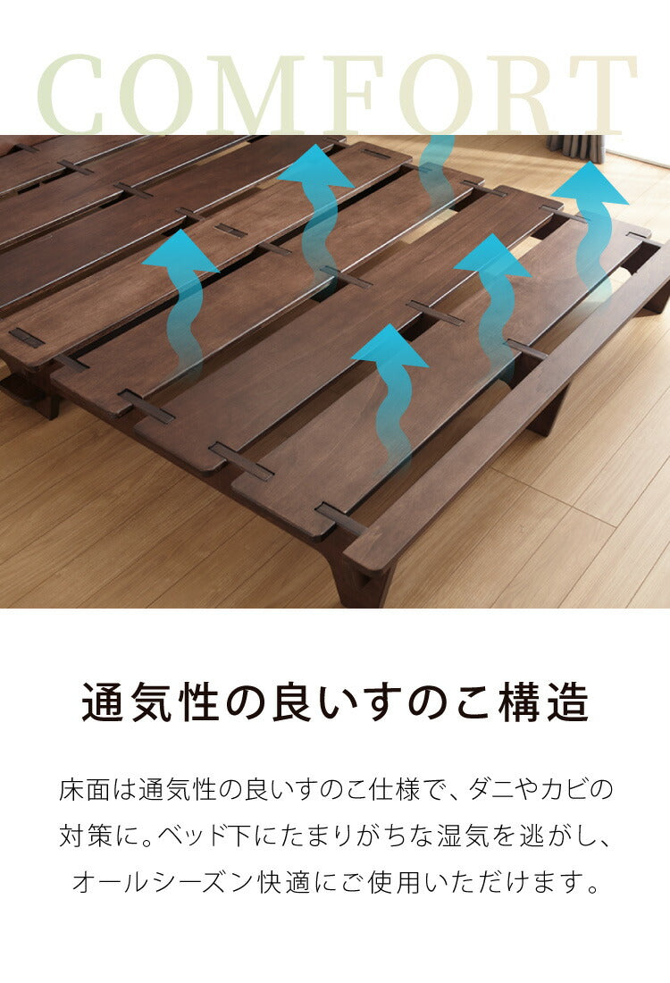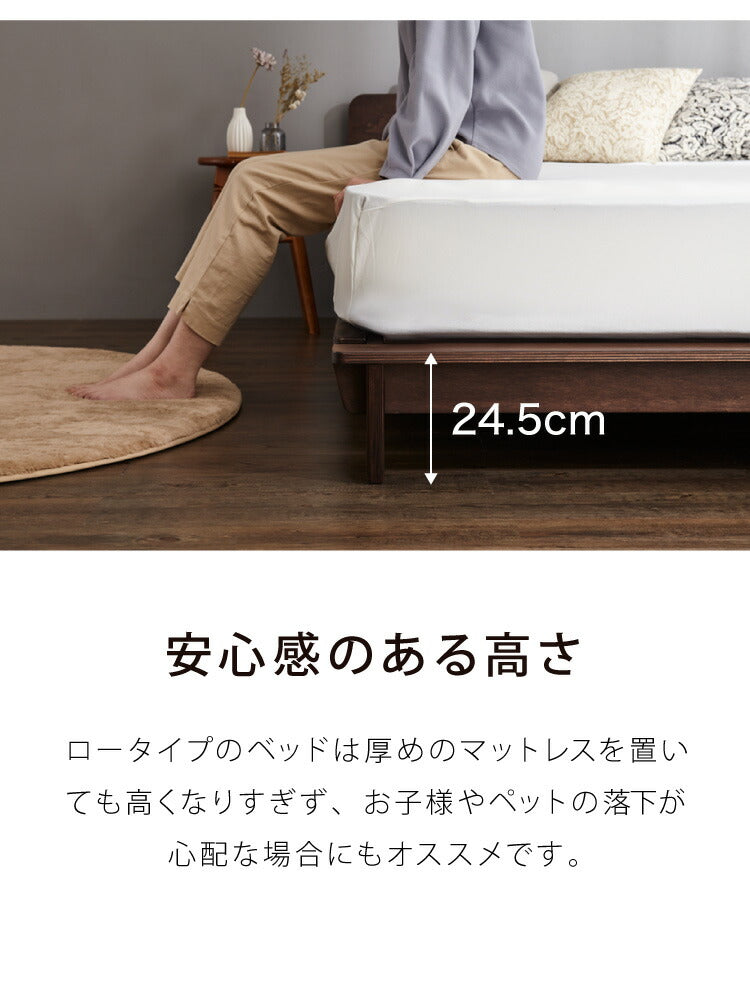 組み立て簡単 ベッドフレーム D ダブル 工具不要 ベッドフレーム単品 ボルトレス 宮付き コンセント付き おしゃれ 北欧 木目 木製 フロアベッド ロータイプ ブラウン(代引不可)