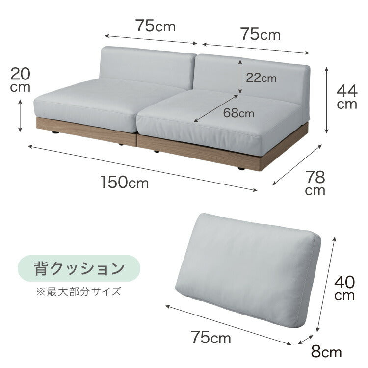 ソファ フロアソファ ローソファ 2人掛け 2P 幅150 座面高さ20 カバーリングソファ 洗える 二人掛け 二人用 2.5人掛け 組み合わせ ファブリック コーナーソファ sofa ひろびろ座面