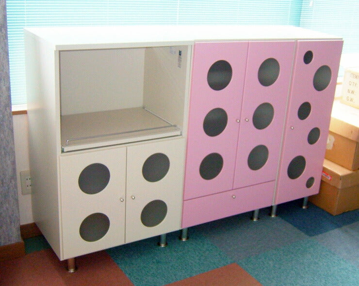 カジュアルミニ レンジ台 幅59×奥行42×高さ101cm 下部アジャスター付 国産 完成品 キッチン 台所 収納 アイボリー ピンク