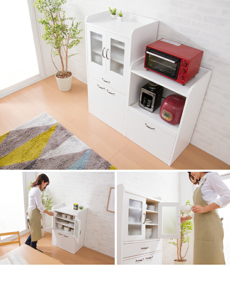 日本製 完成品 食器棚 おしゃれ 北欧 幅60cm 高さ90.5cm ロータイプ ガラス扉 ミニ食器棚 キッチン スリム 台所 収納 (代引不可)